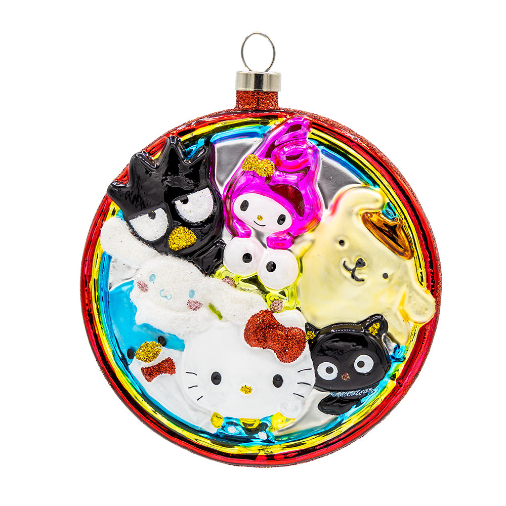 Gather your favorite Hello Kitty and Friends characters for the holidays! This festive ornament features Hello Kitty, Cinnamoroll, My Melody, Keroppi, Badtz-maru, Chococat, Tuxedosam and Pompompurin. Hang them on your tree and spread joy with your favorite friends.