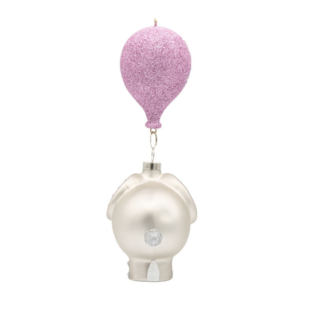 Float into holiday magic with our adorable baby girl elephant tethered to a balloon. A sweet and whimsical addition to any Christmas tree, this charming ornament is sure to delight.