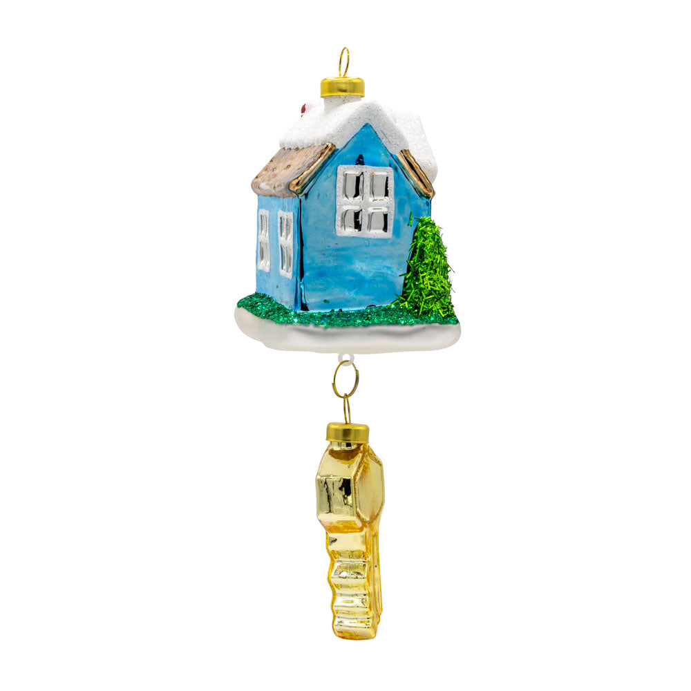 Celebrate your new home with our adorable house ornament featuring a sparkling, dangling key. A charming and sentimental addition to any Christmas tree, this keepsake will be treasured for years to come.