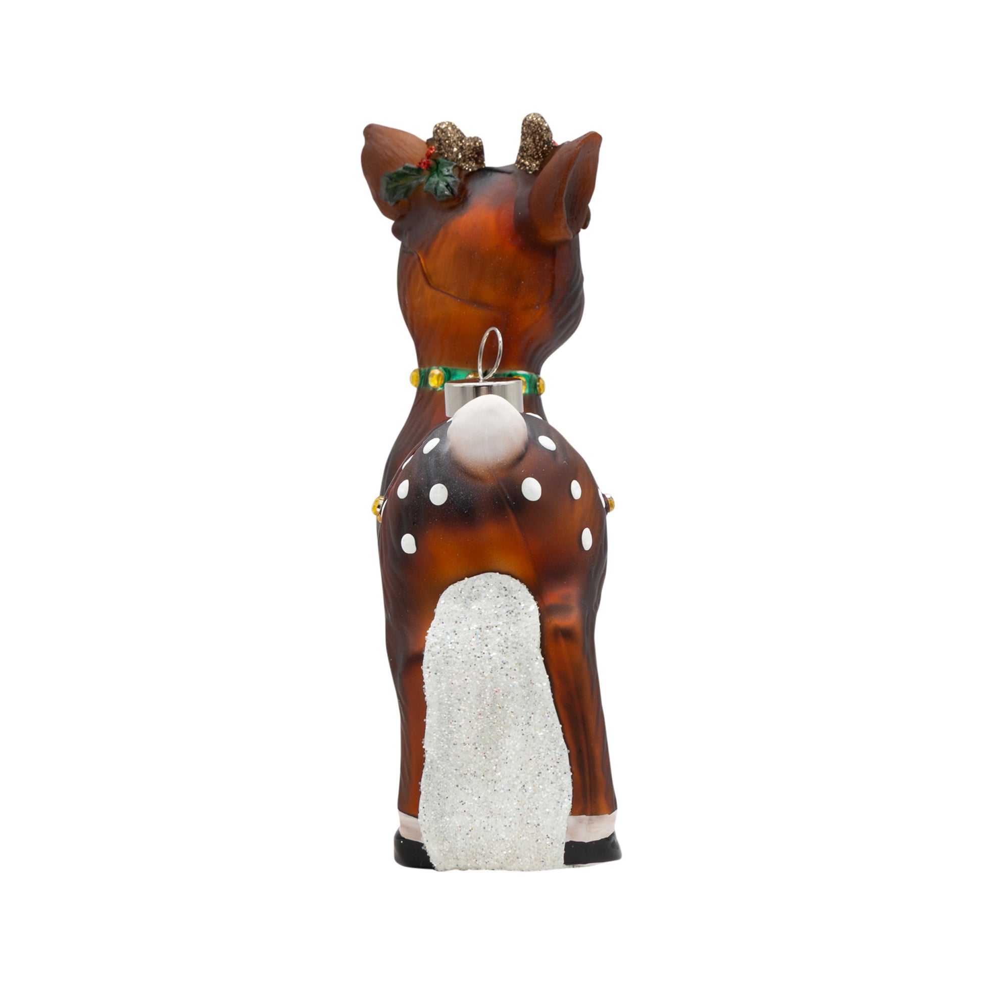 Meet the cutest reindeer on the block! Dressed up with glittery details and ready for the holidays, this sweet reindeer ornament brings playful charm and cozy cheer to the tree. A classic favorite with a fun, feel-good twist.